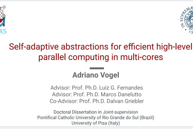 On March 21st, Adriano Vogel (GMAP researcher) successfully defended his thesis “Self-adaptive abstractions for efficient high-level parallel computing in multi-cores” at the School of Technology of the Pontifical Catholic University of Rio Grande do Sul (PUCRS). The defense was done through video conference due to the events of Covid-19. Main research findings: Nowadays, a significant…